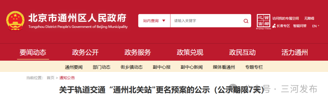 事关燕郊通勤!通州一重要地铁站拟更名,公示中